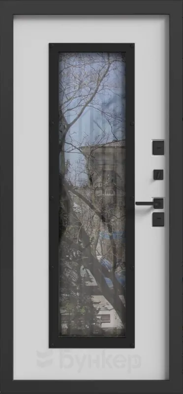Стеклопакет 4-х камерный, тонировка стекла: снаружи Графит, внутри зеркальная серебро. Лазерная решетка внутри стеклопакета (муар черный)